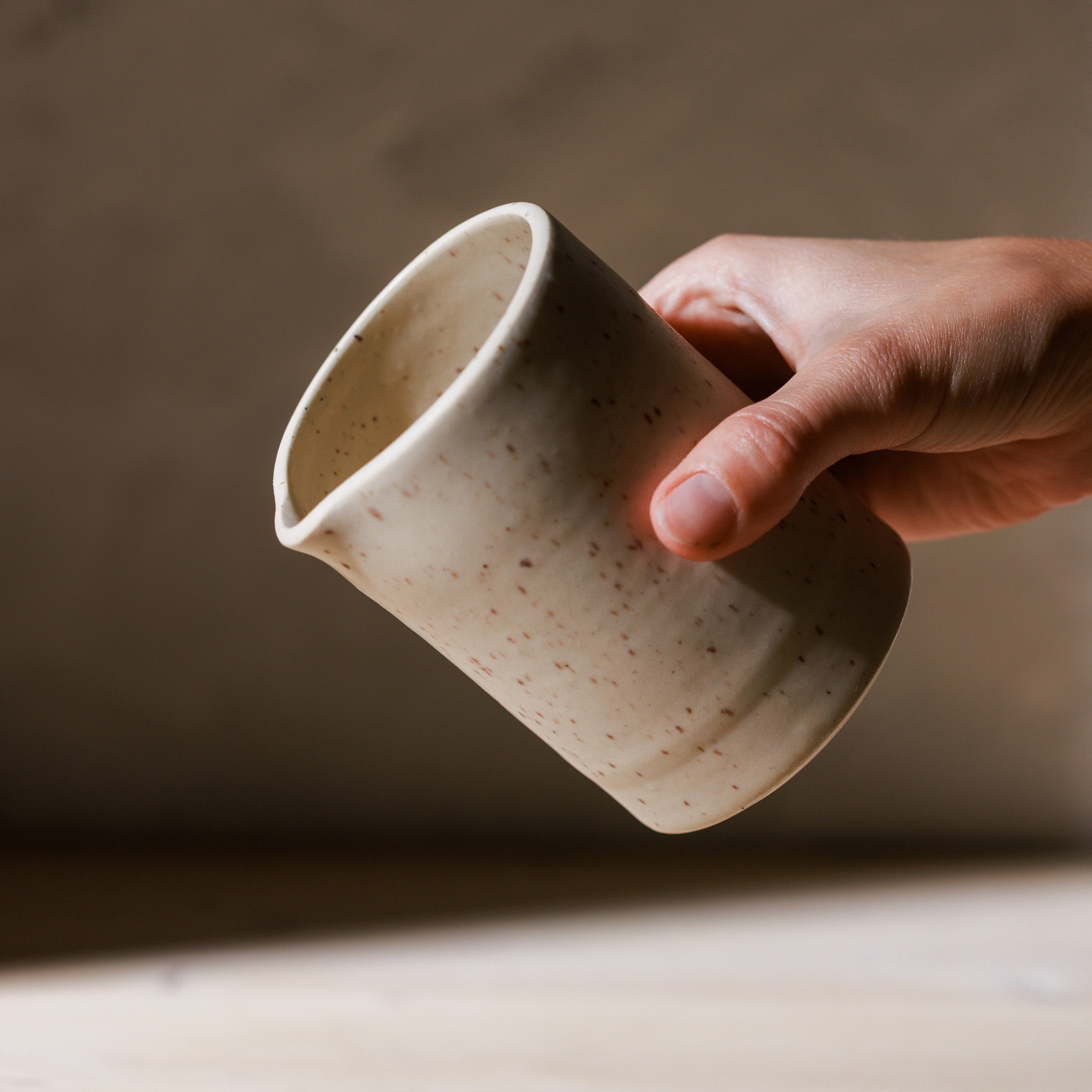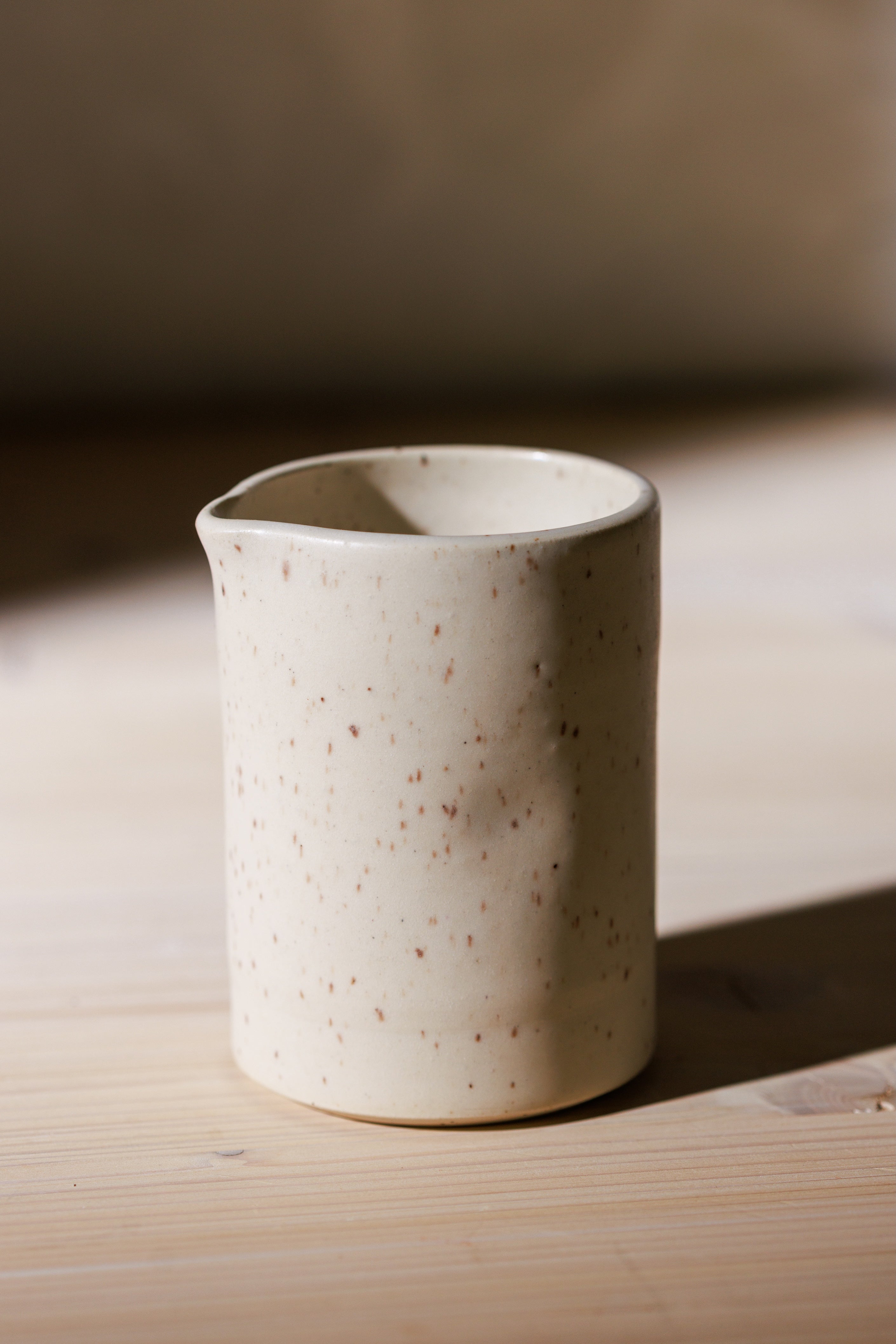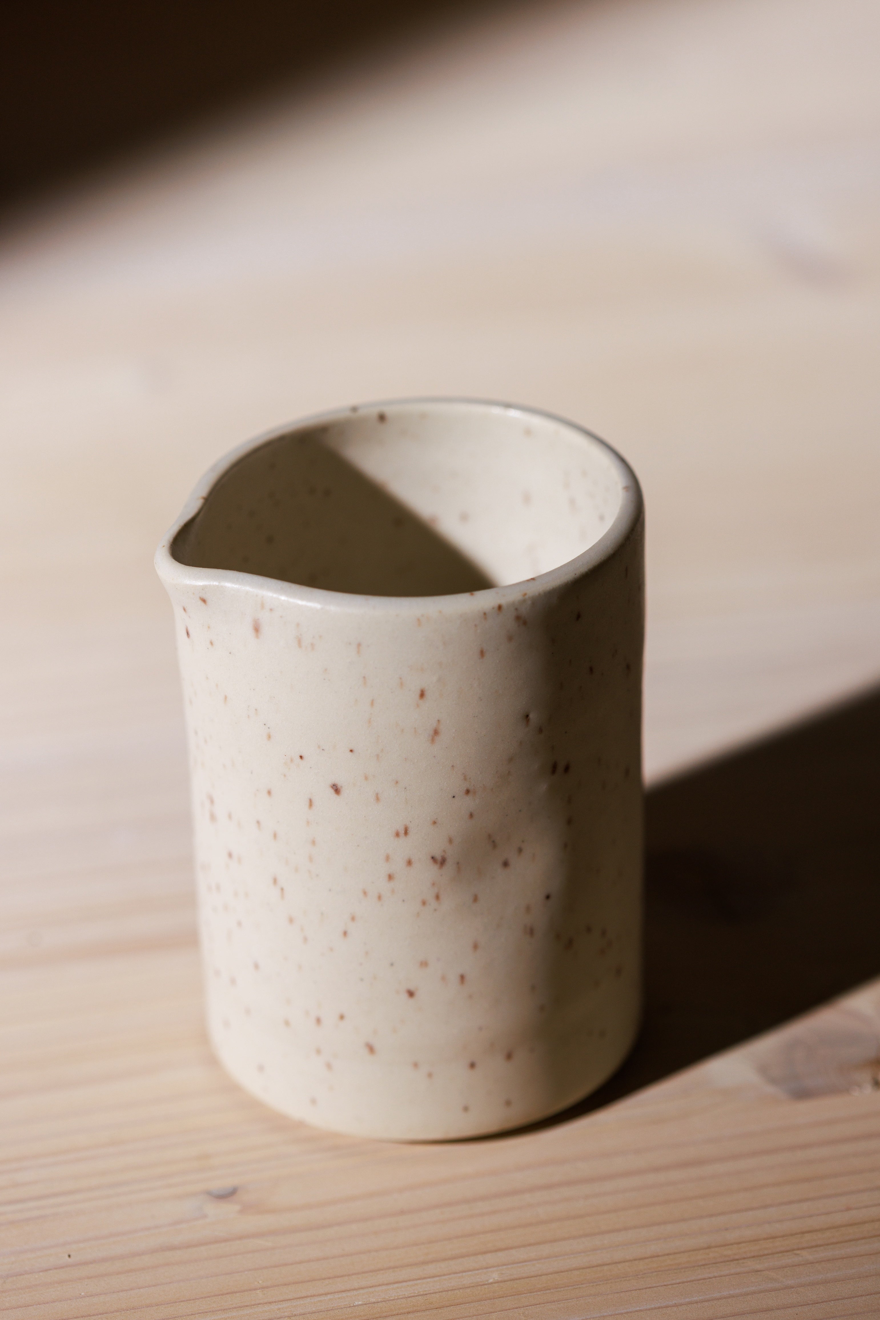 Crafted from sandstone clay, this simple yet functional vessel is designed to hold syrups, dressings or cream as you dress your table for a meal. The indents on the vessel provide a more comfortable grip while using. Whether it is on your dinner table or kitchen counter, we hope this ceramic vessel will bring beauty and simplicity to your home.