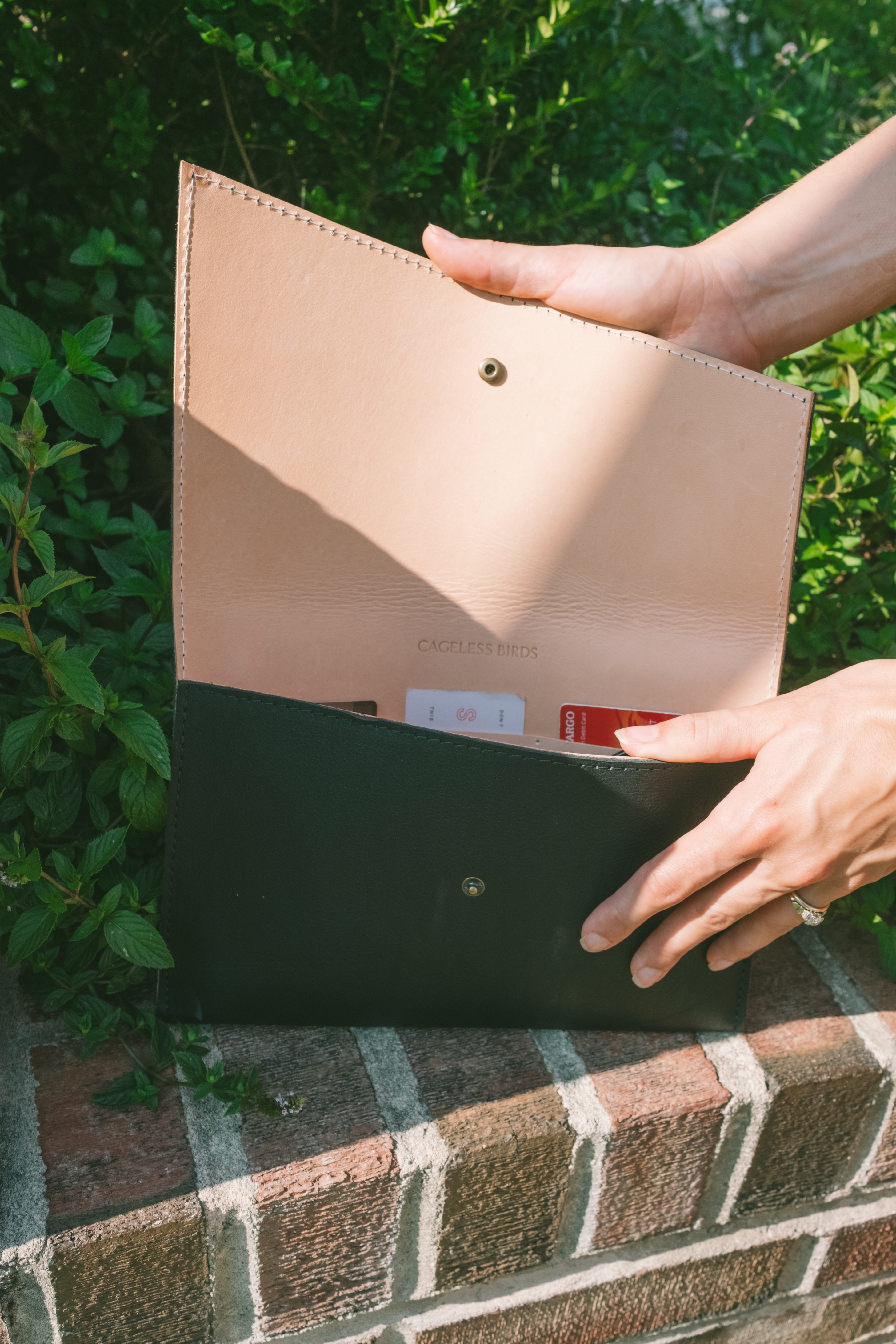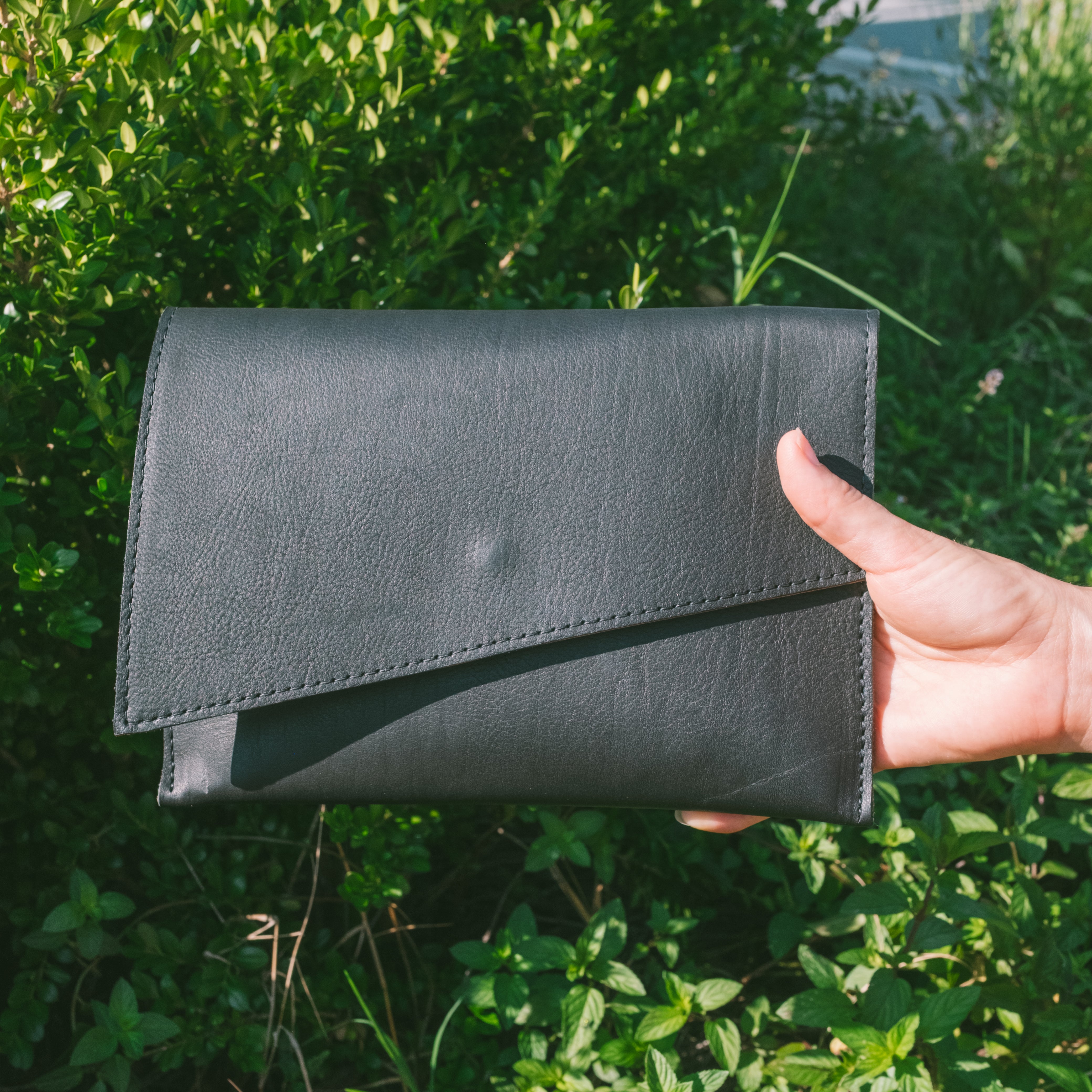One of our newest clutch designs, the Asymmetrical Clutch in Black and Red is here just in time for Spring! Featuring a clean asymmetrical cover flap, 3 card slots and a hidden button-snap closure, this classy clutch is perfect for that event when you want something beautiful to carry just what you need. Made to feel sleek and classy, yet still casual for day to day moments. We hope you enjoy bringing this clutch wherever you go.