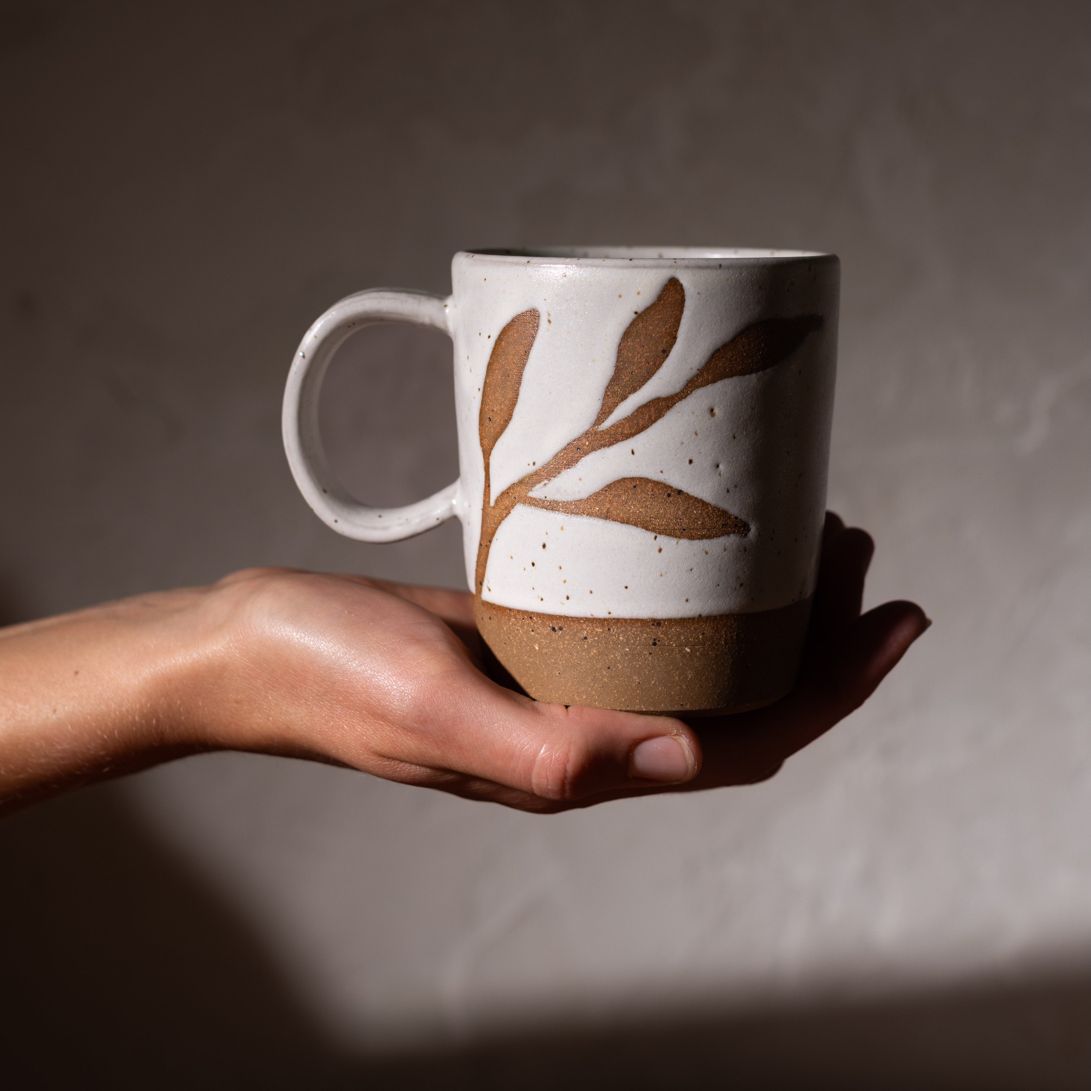 Crafted from brownstone clay, this Autumnal Mug has a raw branch design surrounded in our signature oatmeal colored glaze. Whether holding your morning tea or coffee, we hope this piece is a delightful addition to your favorite collection of drinking mugs.