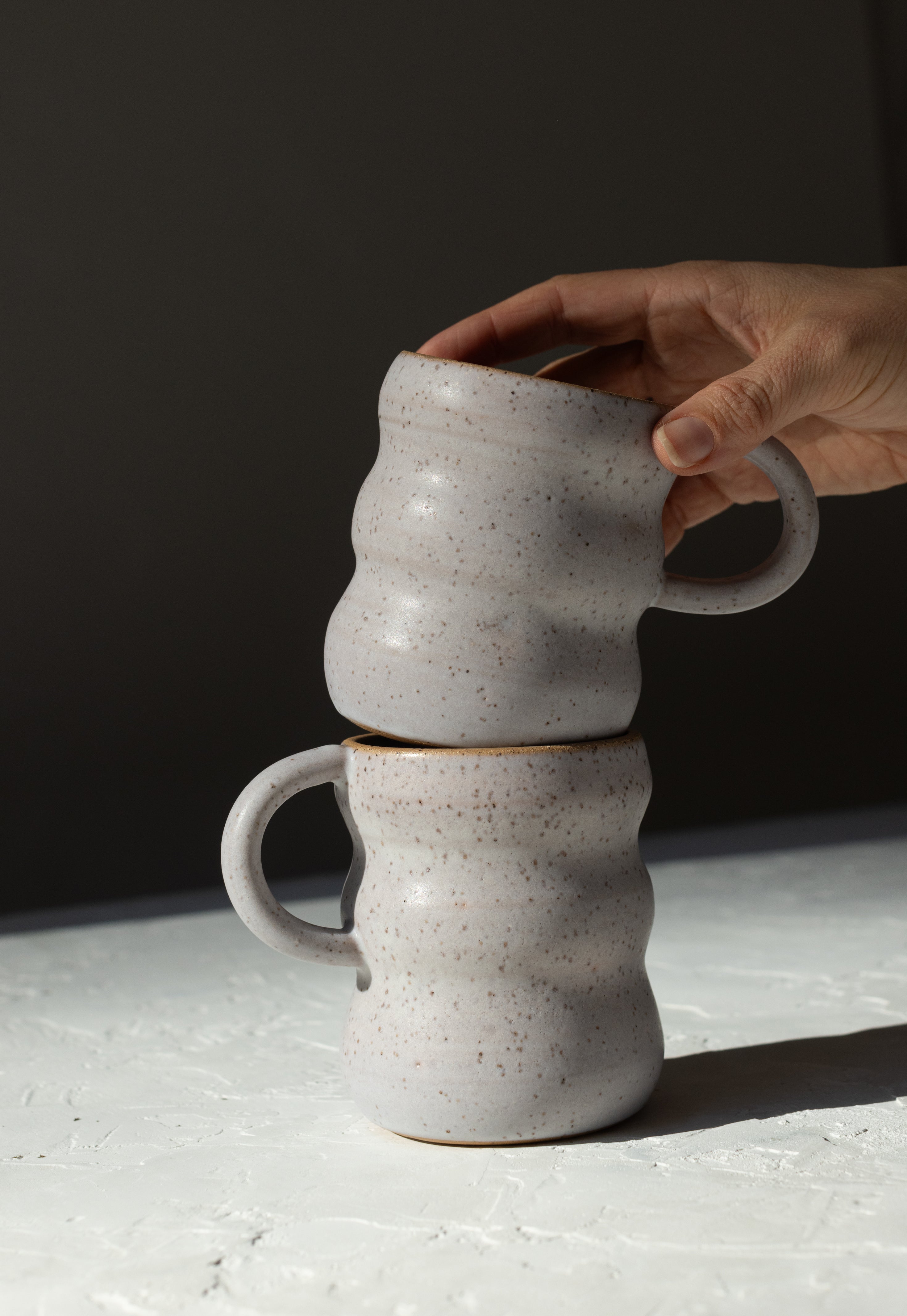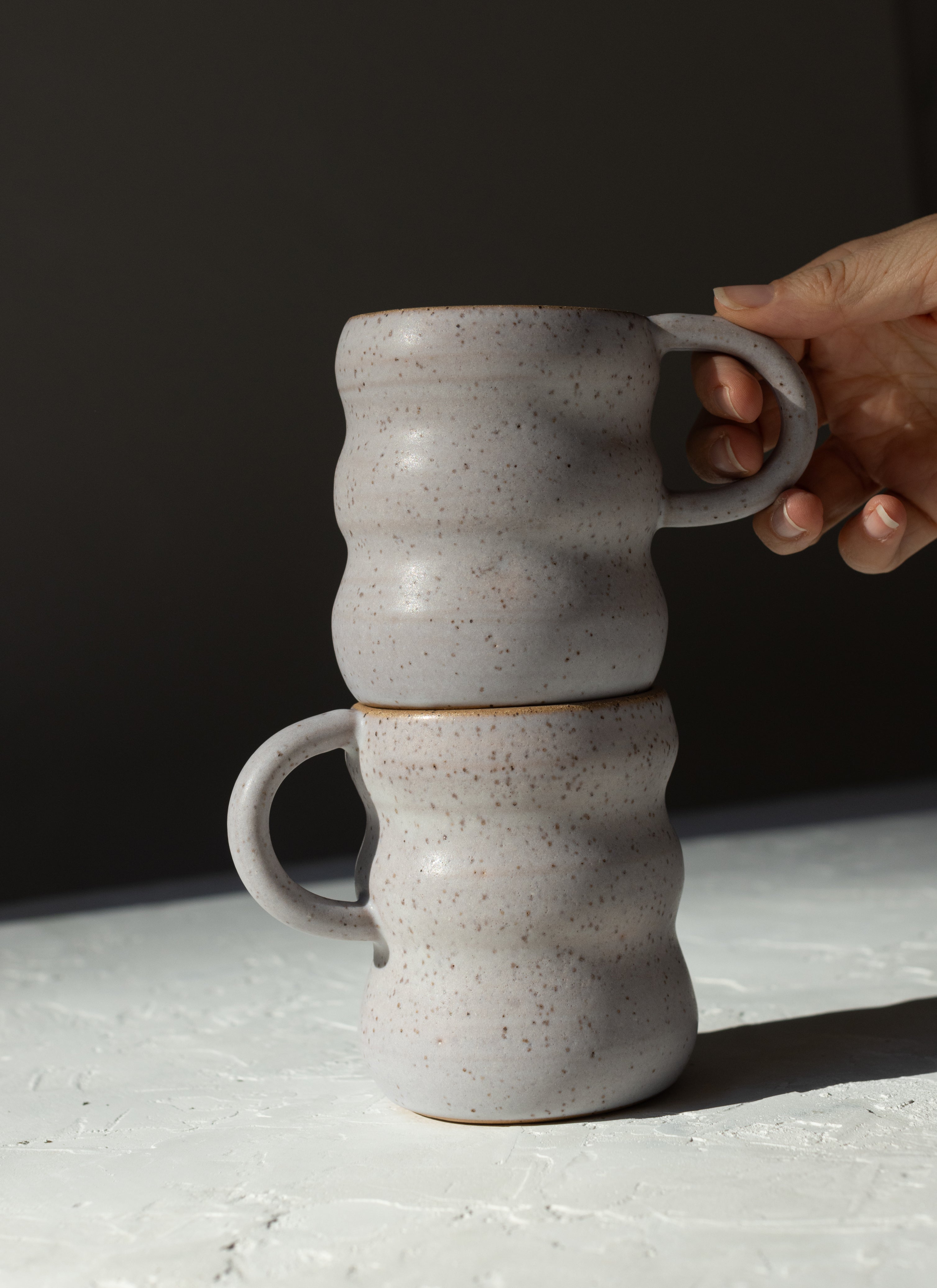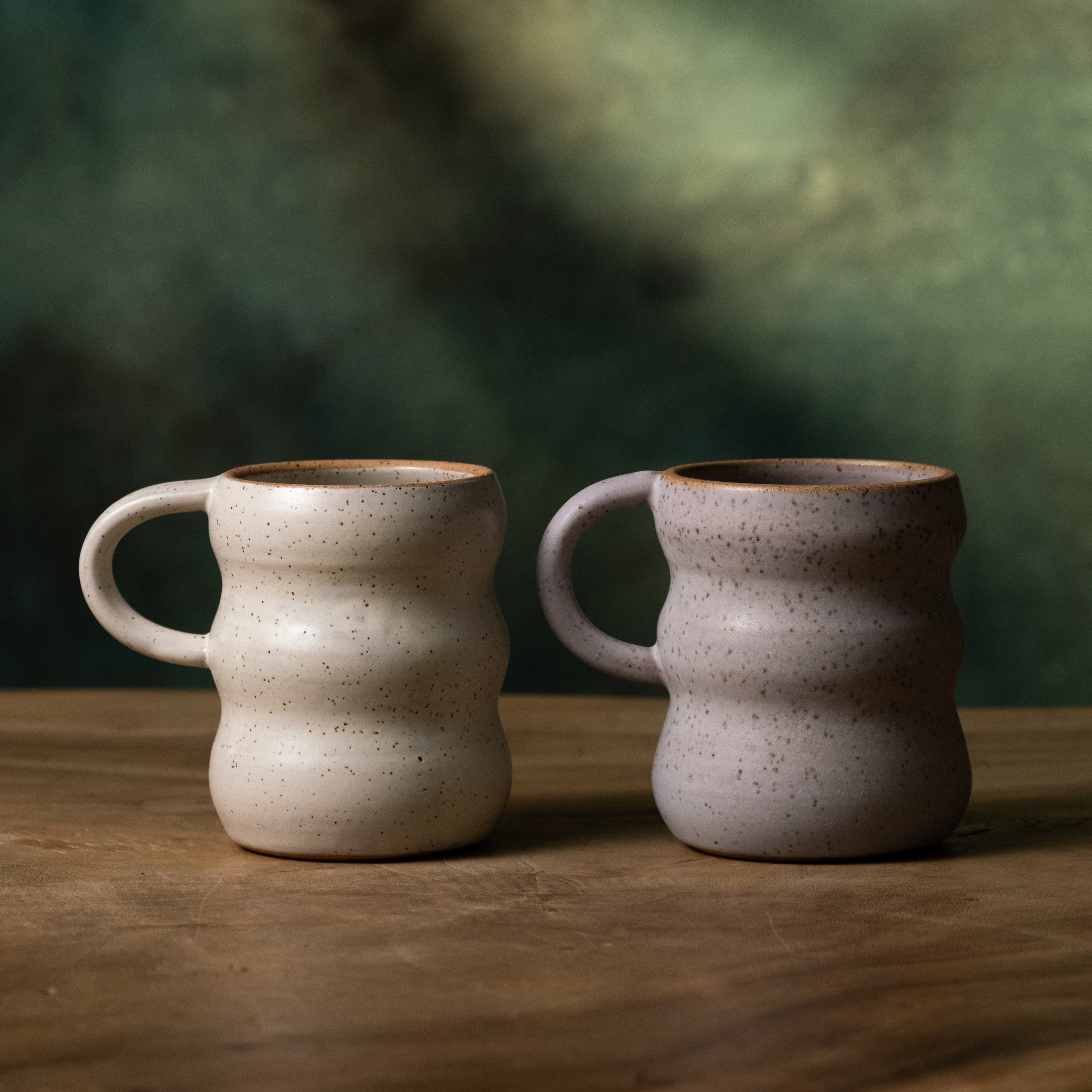 The Wavy Mug is designed to evoke creativity in your daily life with its playful shape showing movement. Hand crafted from speckled clay, this mug is glazed in our oatmeal or lavender color fits comfortably within your hand. Whether it’s coffee in the morning or paired with your evening dessert, this mug will be the one you want to reach for everyday.