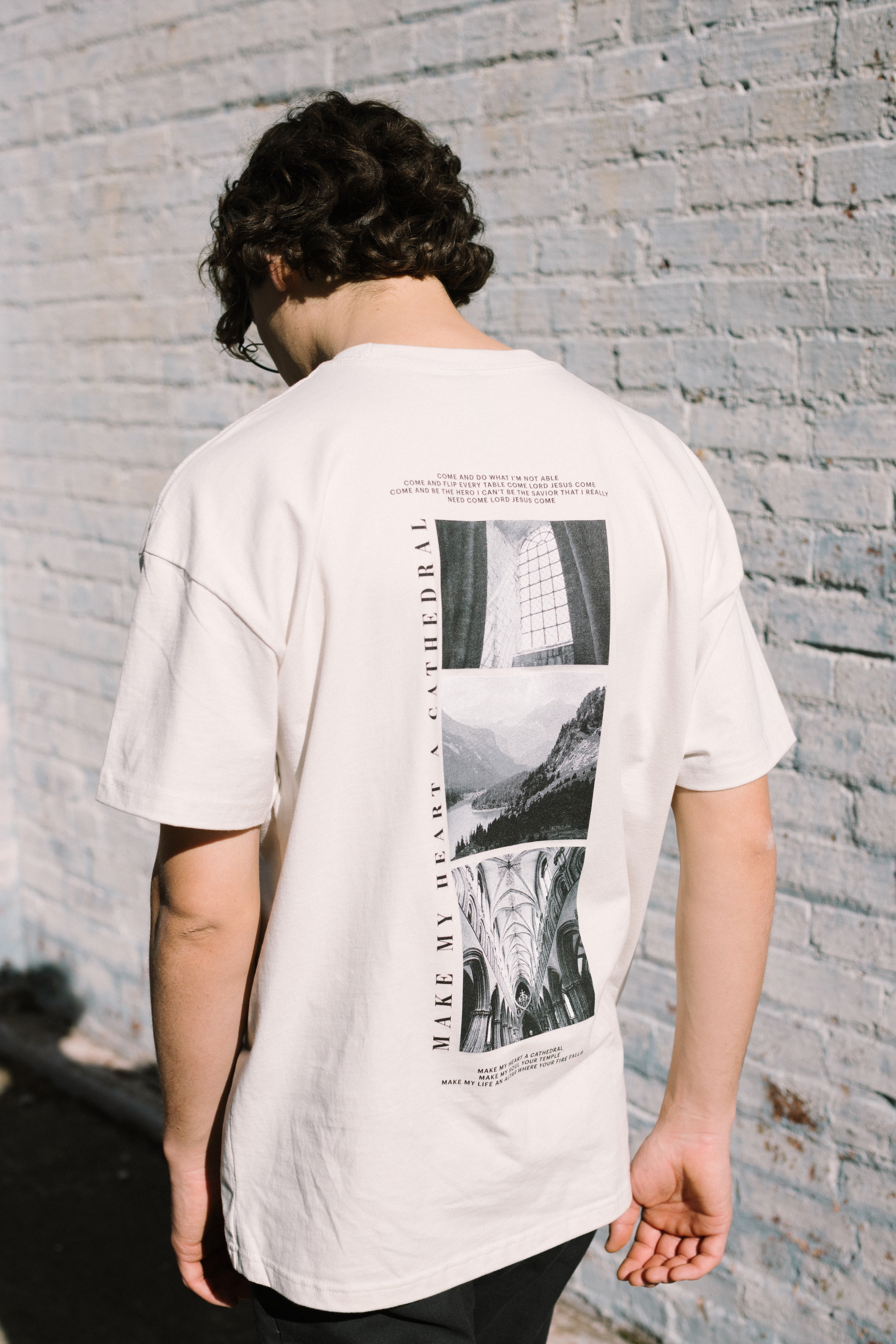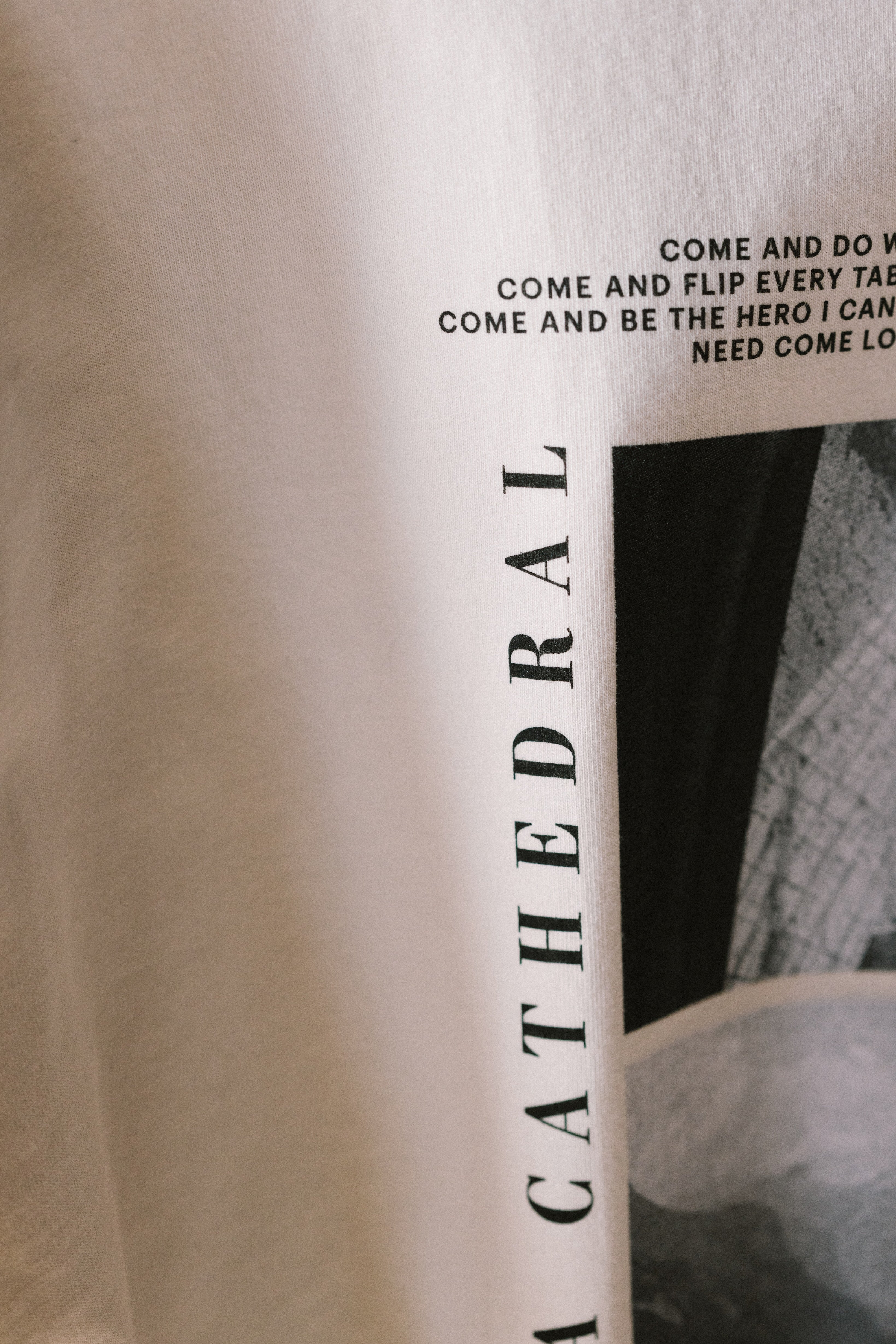 Our NEW Cathedral Tee in cream features lyrics from Jonathan & Melissa Helser’s song, “Cathedral.” This tee was designed in-house by our team and is crafted using 6.8 oz 100% combed ring spun and US cotton for those who appreciate quality.