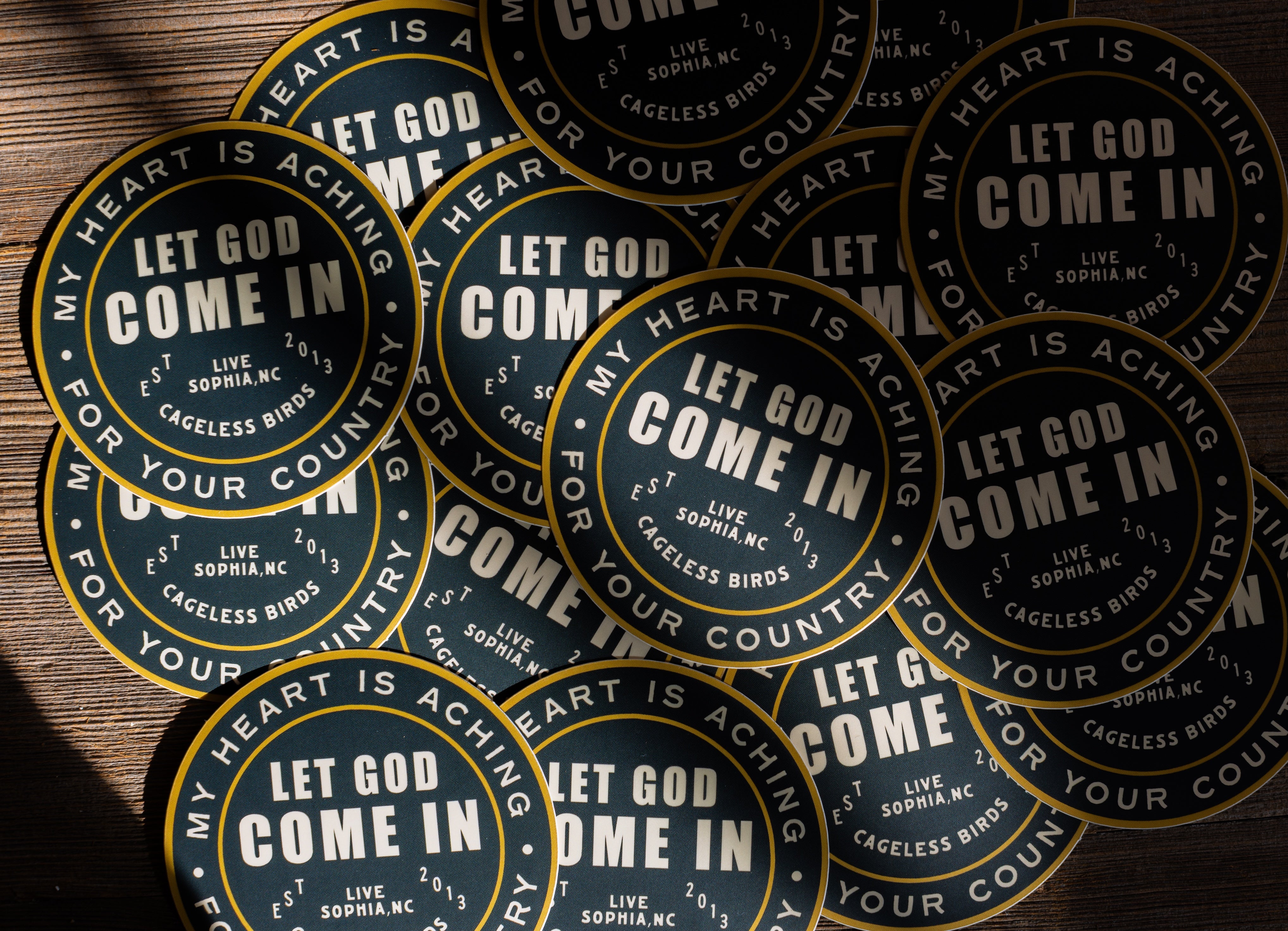 Our NEW Let God Come In sticker features lyrics from the title track song “Let God Come In.” This sticker is durable, 3” in diameter, and was designed in house. We pray that this sticker would remind you of God’s presence in your life.