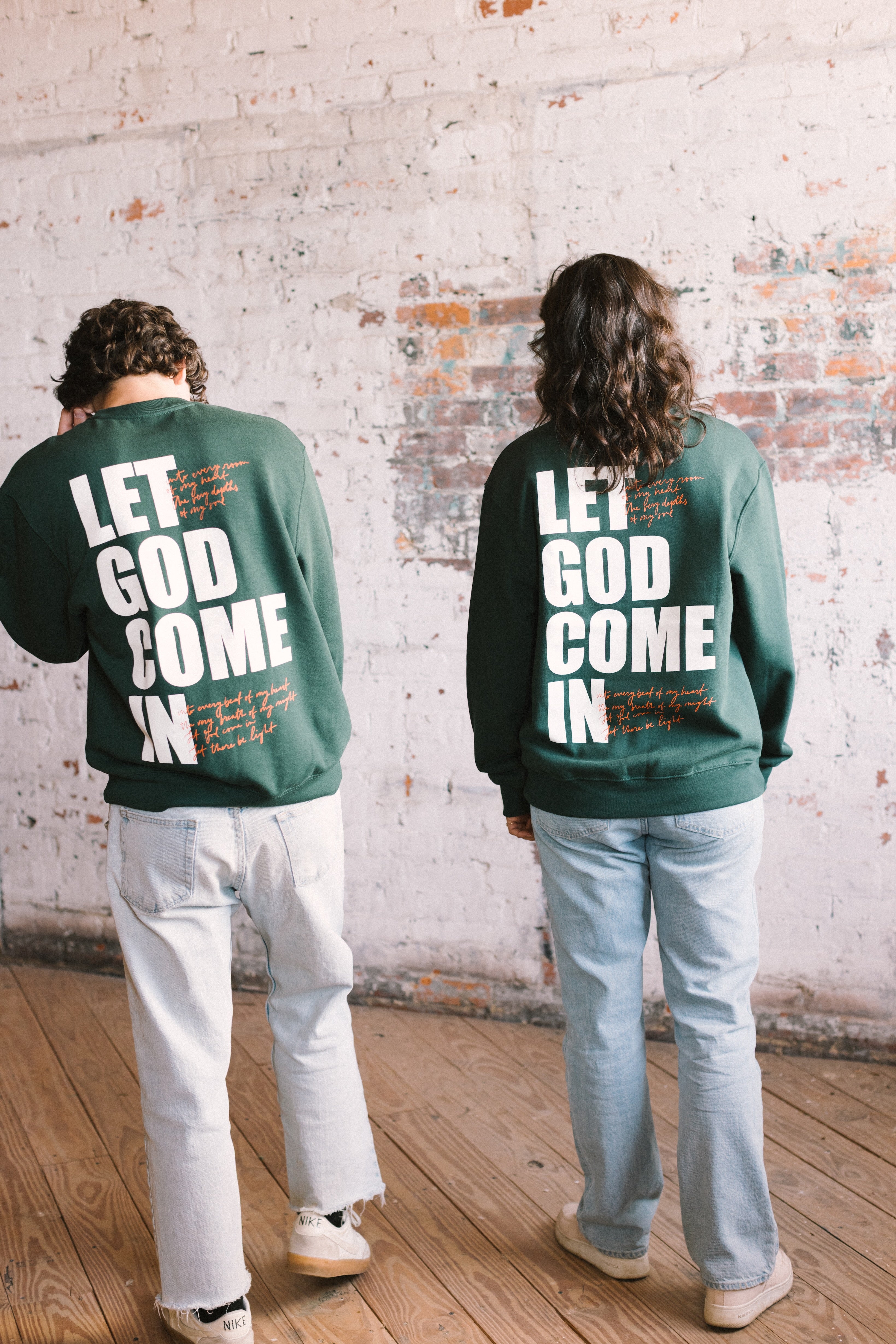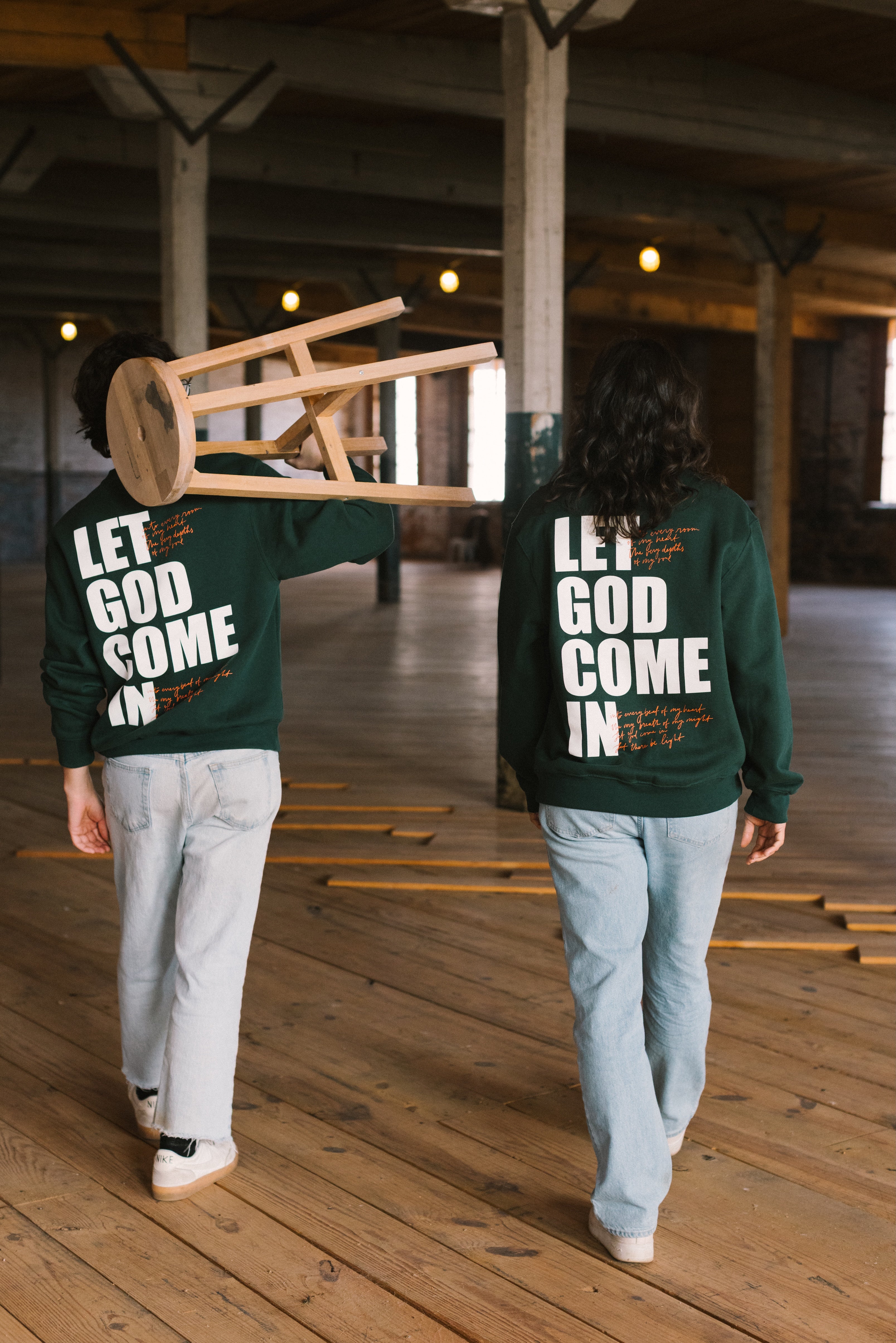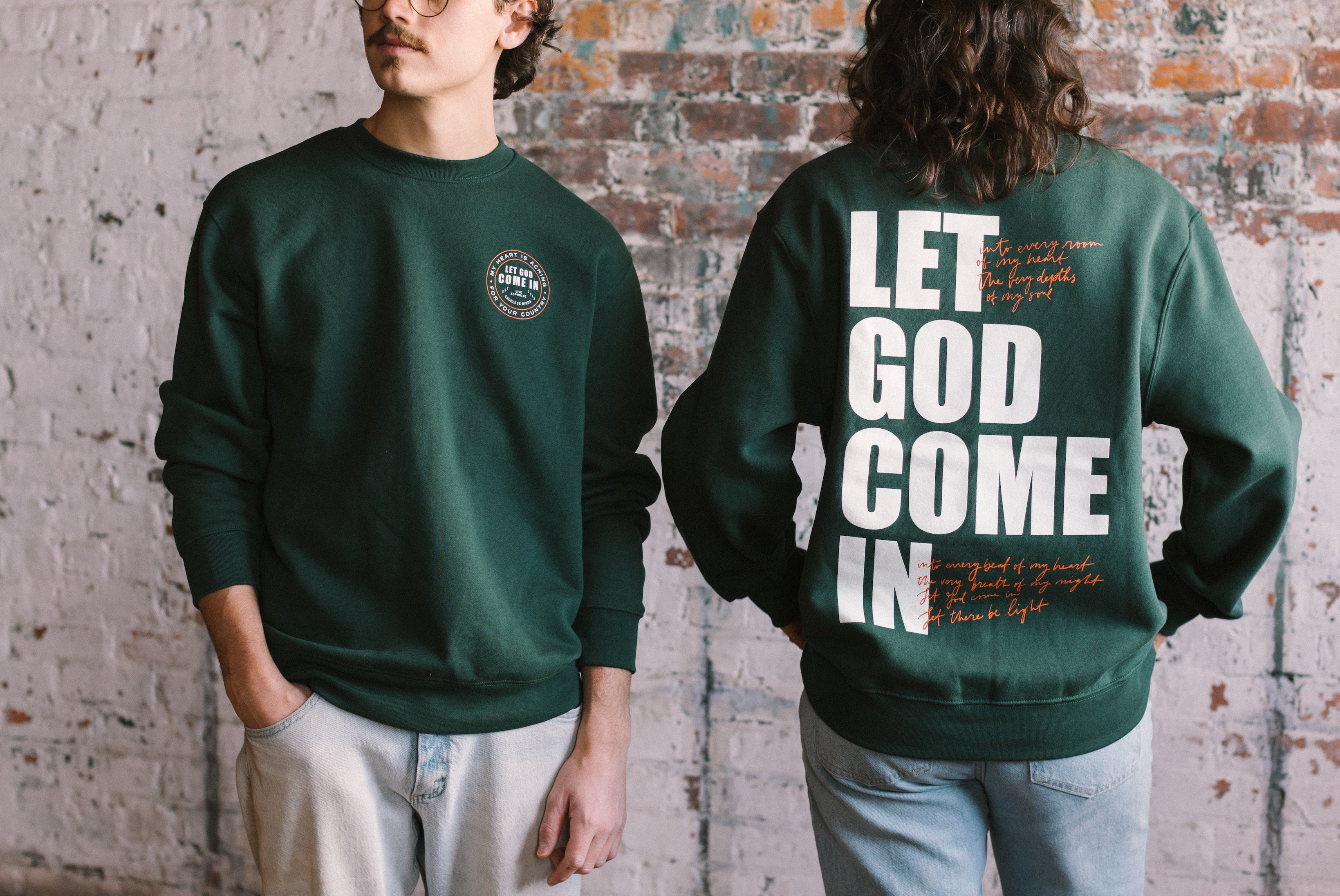 Our Let God Come In Tee comes in the color faded gray and features lyrics from the title track of our new live worship album: Let God Come In. This crewneck was designed in-house by our team and features the following lyrics from “Let God Come In”