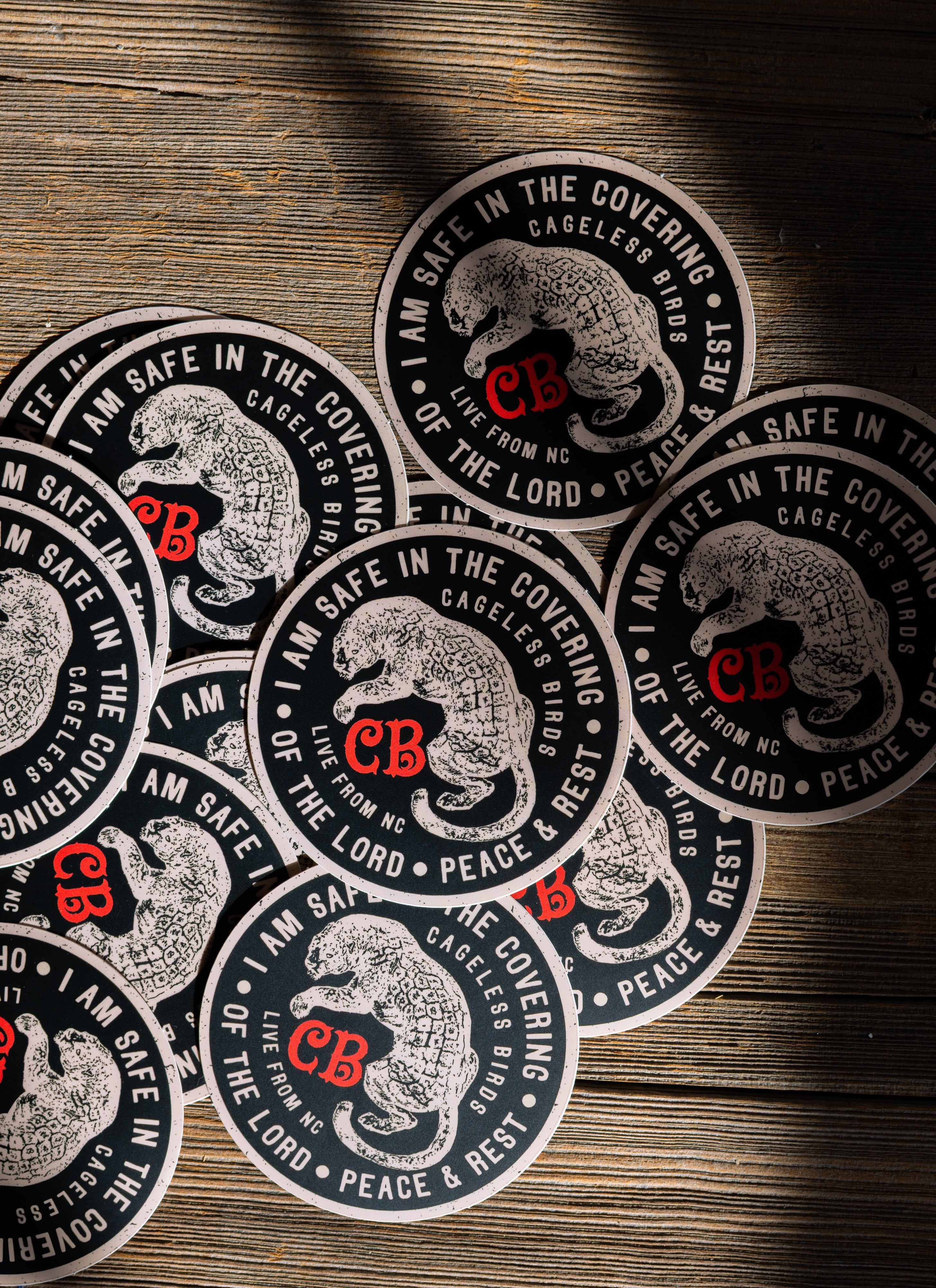 Our NEW Safe in the Covering Sticker in black features lyrics by Molly Skaggs from her new song “Safe in the Covering.” This sticker is durable, 3” in diameter, and was designed in house. We pray that this sticker would remind you of God’s presence and covering yin your life.